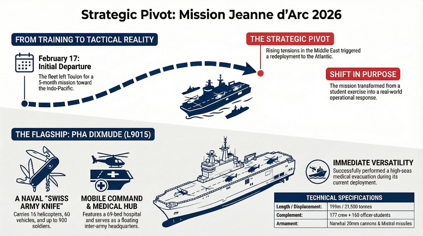 When the Jeanne d’Arc 2026 mission left Toulon on February 17, the objective was clear: train the next generation of French naval officers through a five-month deployment across multiple theaters.